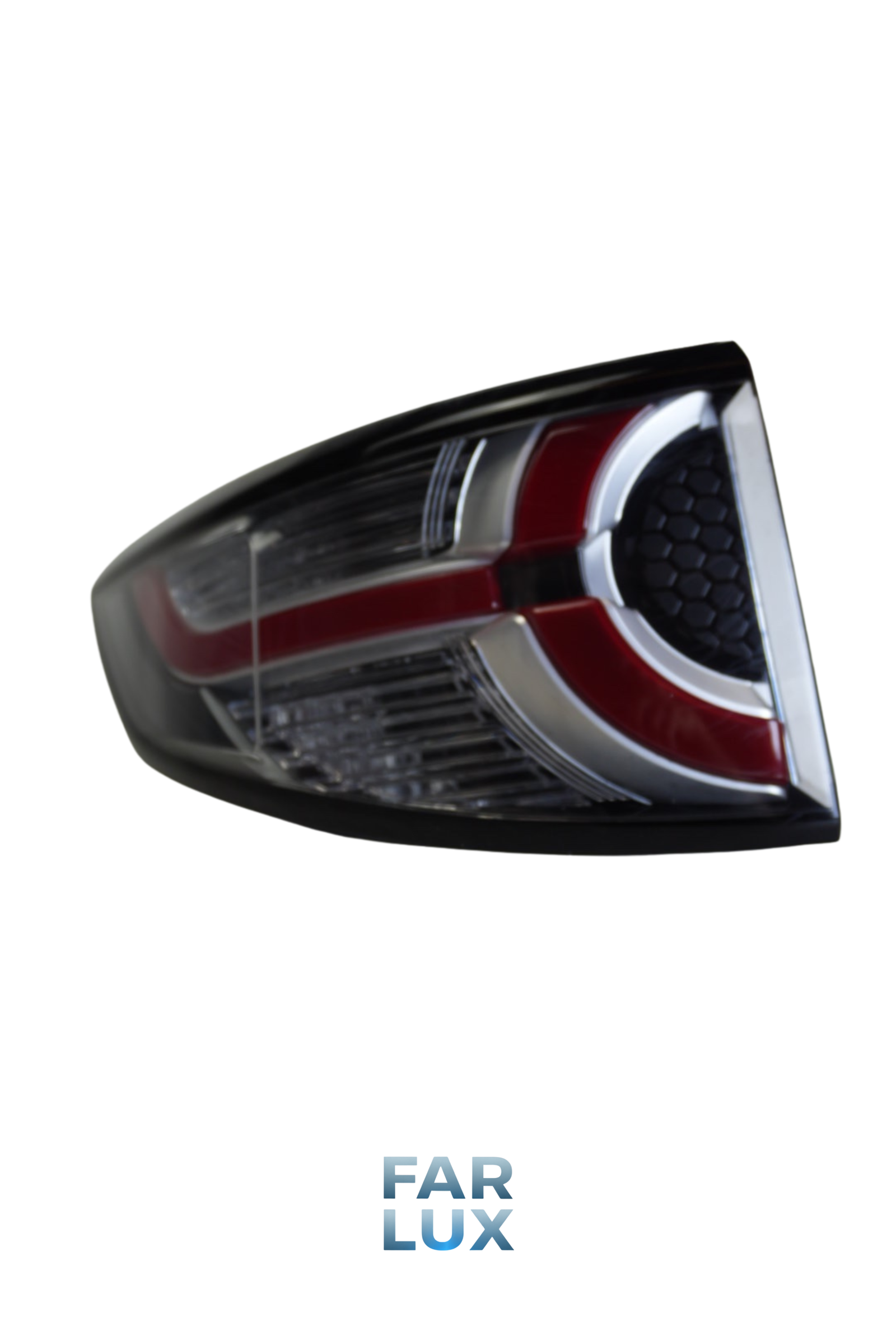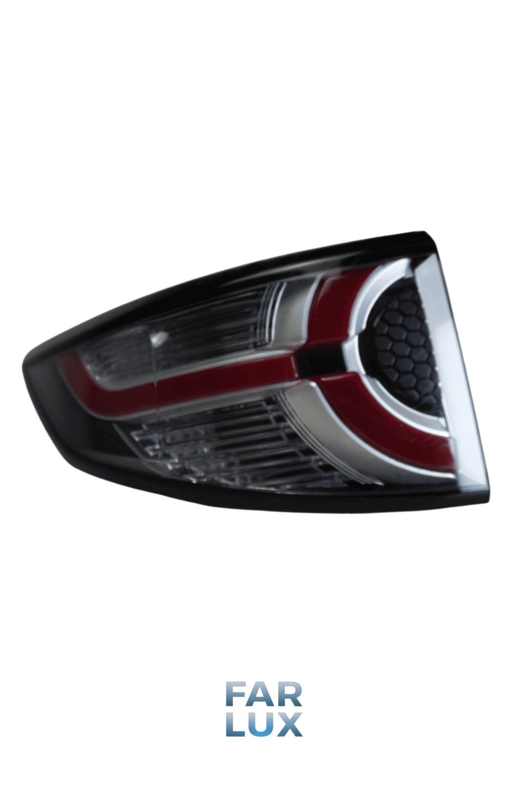 A lanterna traseira da Land Rover Discovery Sport 2016 a 2019 possui design moderno e robusto, acompanhando o estilo premium da linha Land Rover. O conjunto é instalado nas extremidades da traseira do veículo e possui formato horizontal com leve prolongamento para a lateral da carroceria.